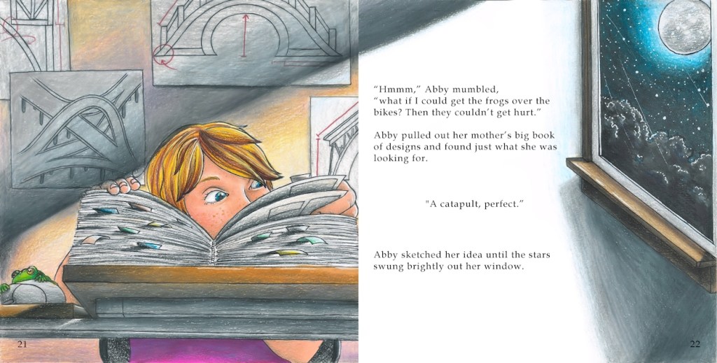 Abigail Ann in the Bike Path Predicament is a playful project that seeks to empower children, particularly girls, with the confidence to think and act scientifically. This subtly educational story is woven through a fun and colorful book about a young girl who rescues an injured frog on a bike path and must use her ingenuity to engineer a lasting solution. Written by myself, illustrated by emerging artist Sarah Wood, and published by the new start-up Oakenday Press, Abigail Ann is at the locus of science education and art communication.